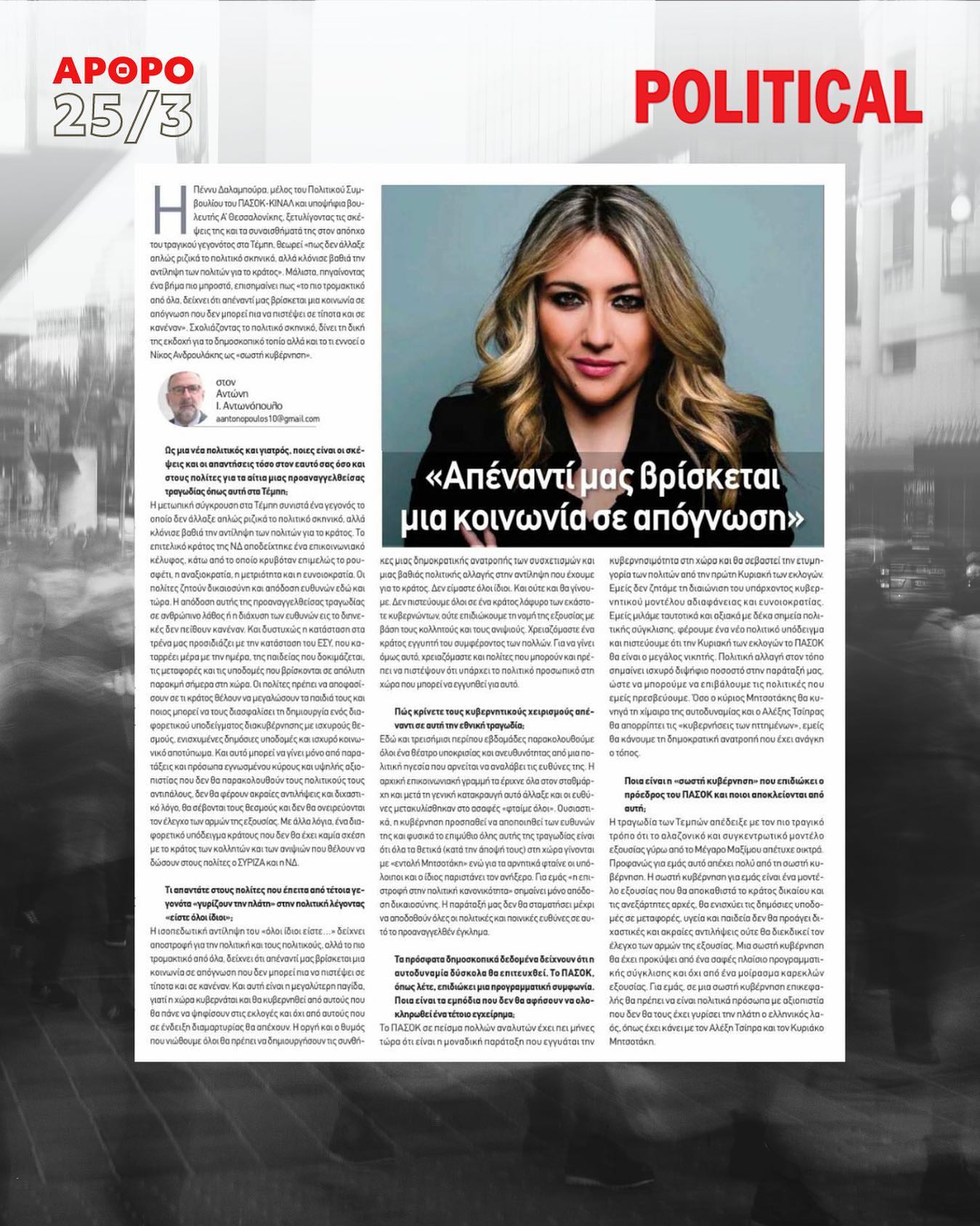 Συνέντευξη στον Αντώνη Ι. Αντωνόπουλο, που δημοσιεύτηκε στην Εφημερίδα «POLITICAL»